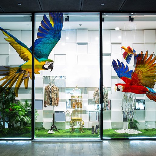 Retail Windows: Seasonal graphics, promotional messages, or branded visuals